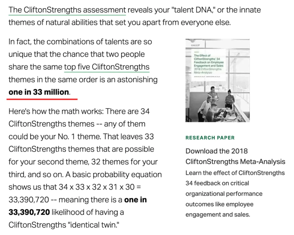 יותר מזה, אחד המבחנים הכי מפורסמים שבעלי עסקים ומנהלים עושים שנערך על 2 מיליון אנשים ברחבי העולם כדי לגלות את החוזקות הטבעיות שלהם כבני אדם – ״מבחן גאלופ״ מצא: