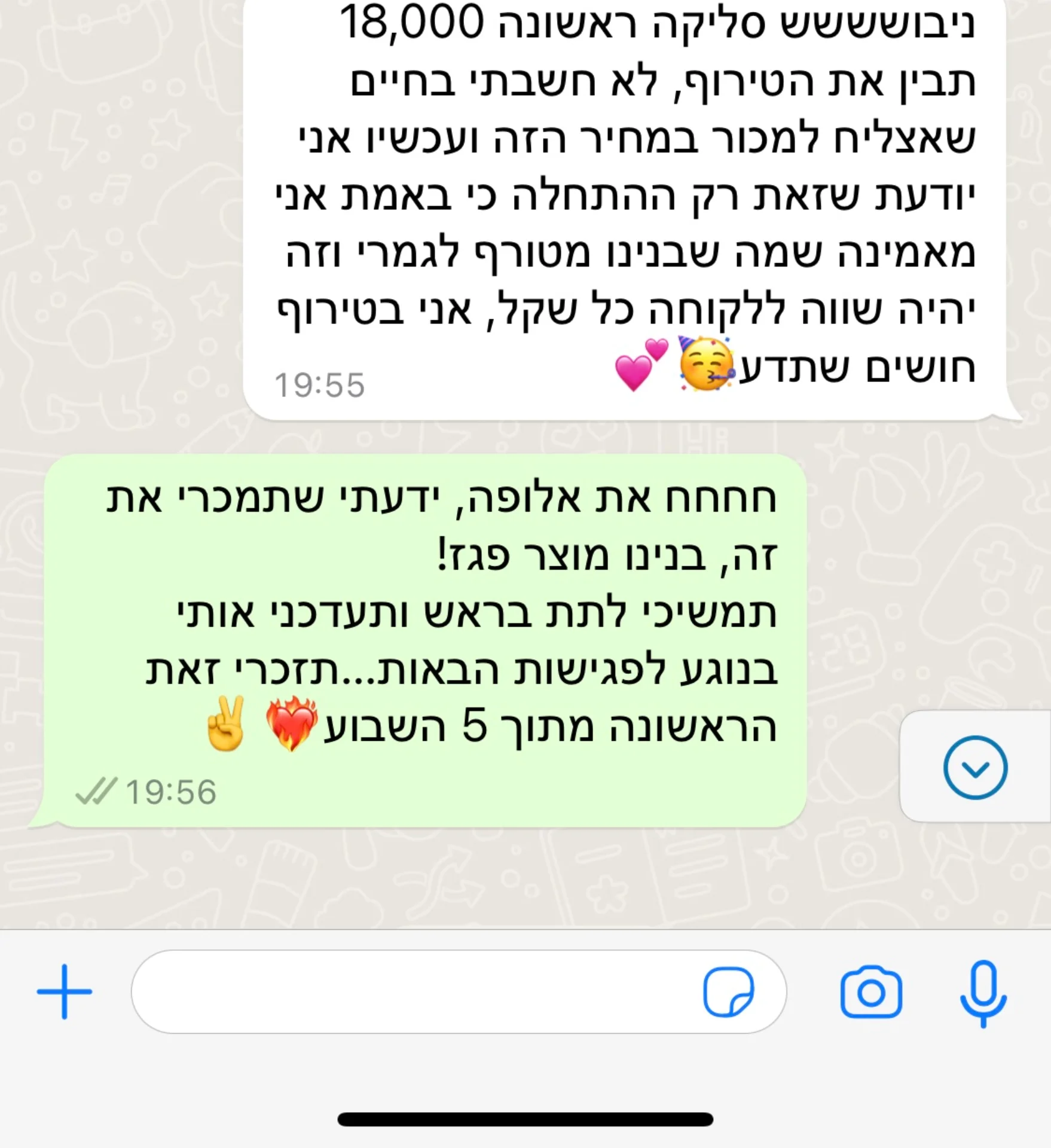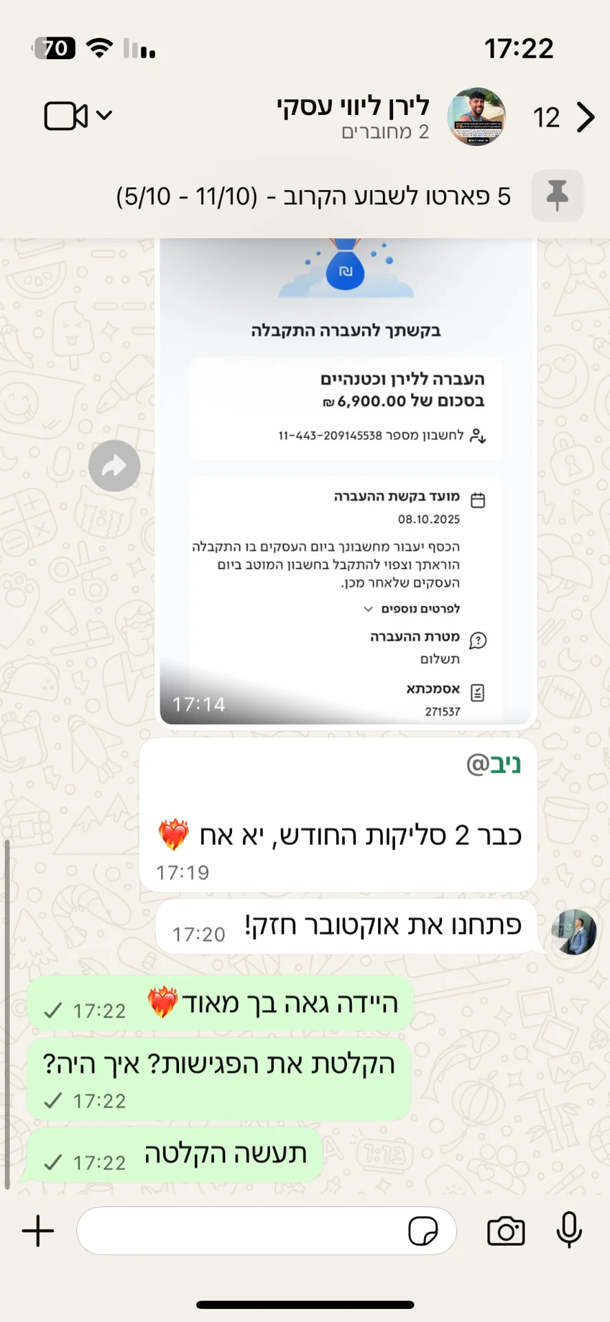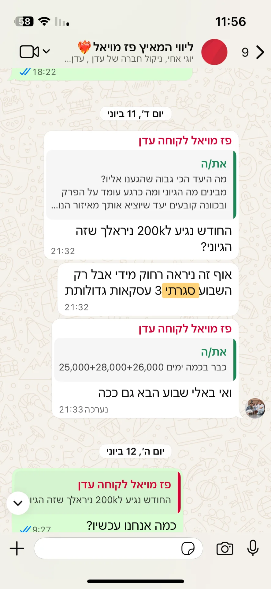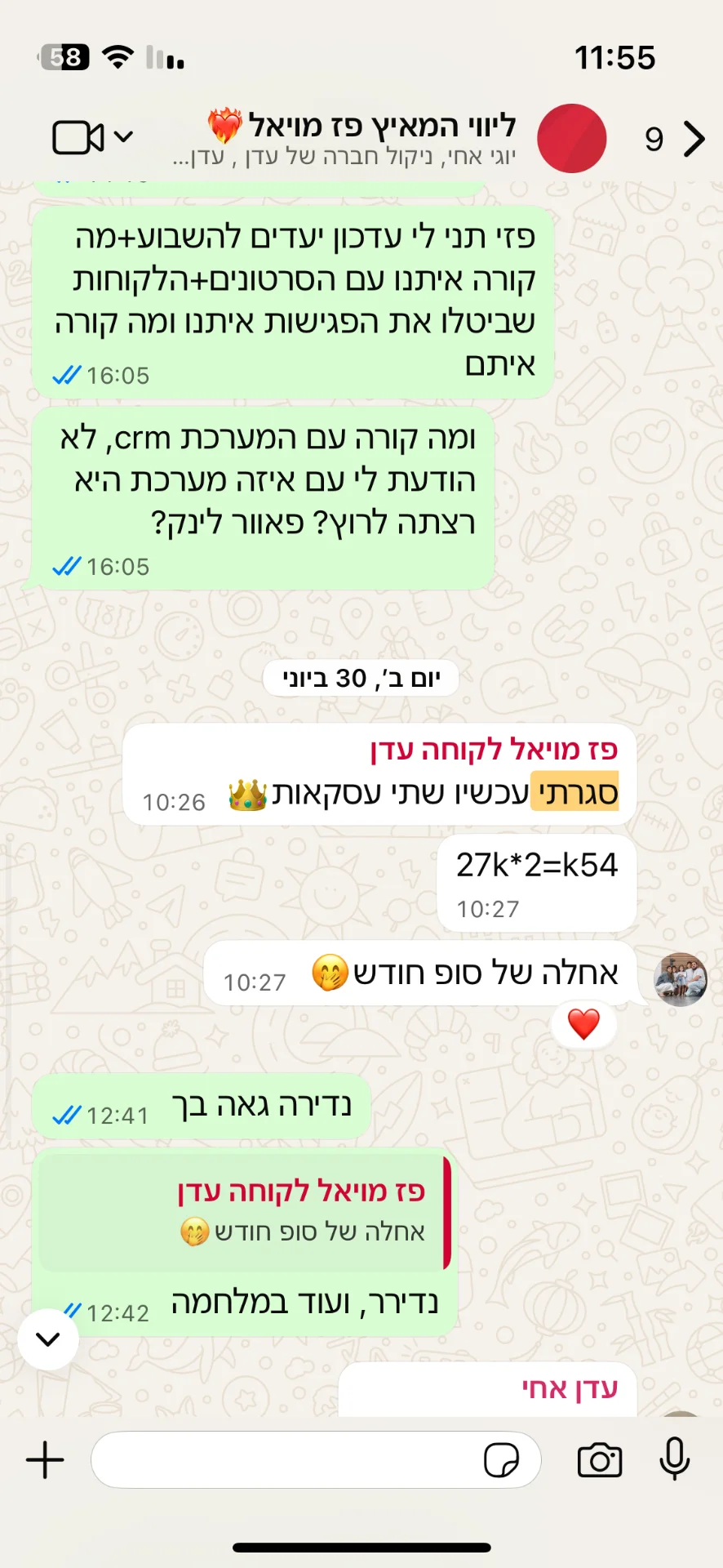 ובפחות משבועיים – אני ועדן סגרנו 9 ליווים עסקיים. 324,000 ש"ח.
