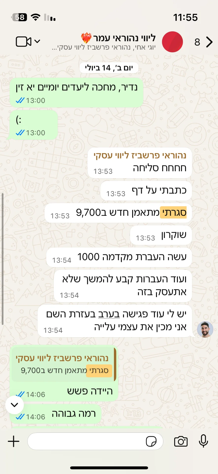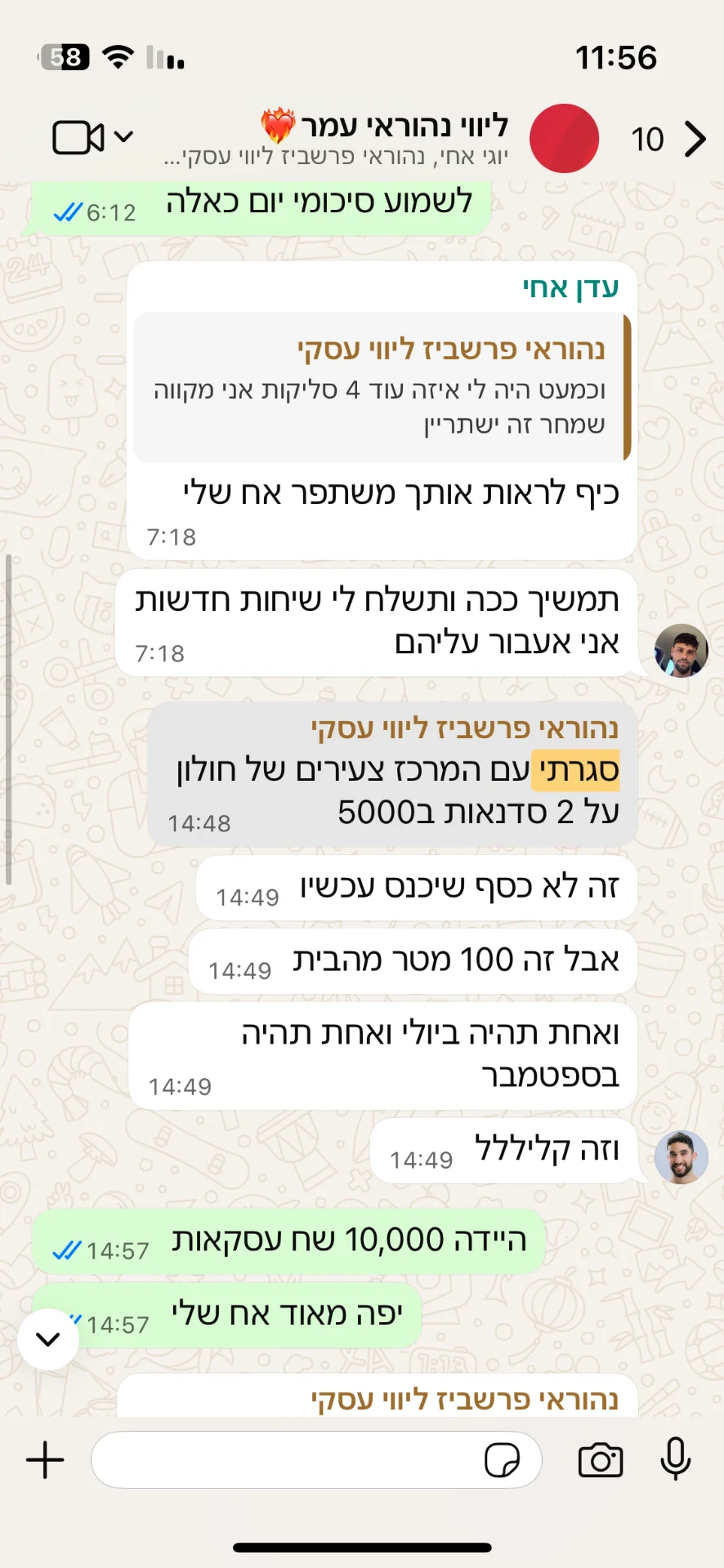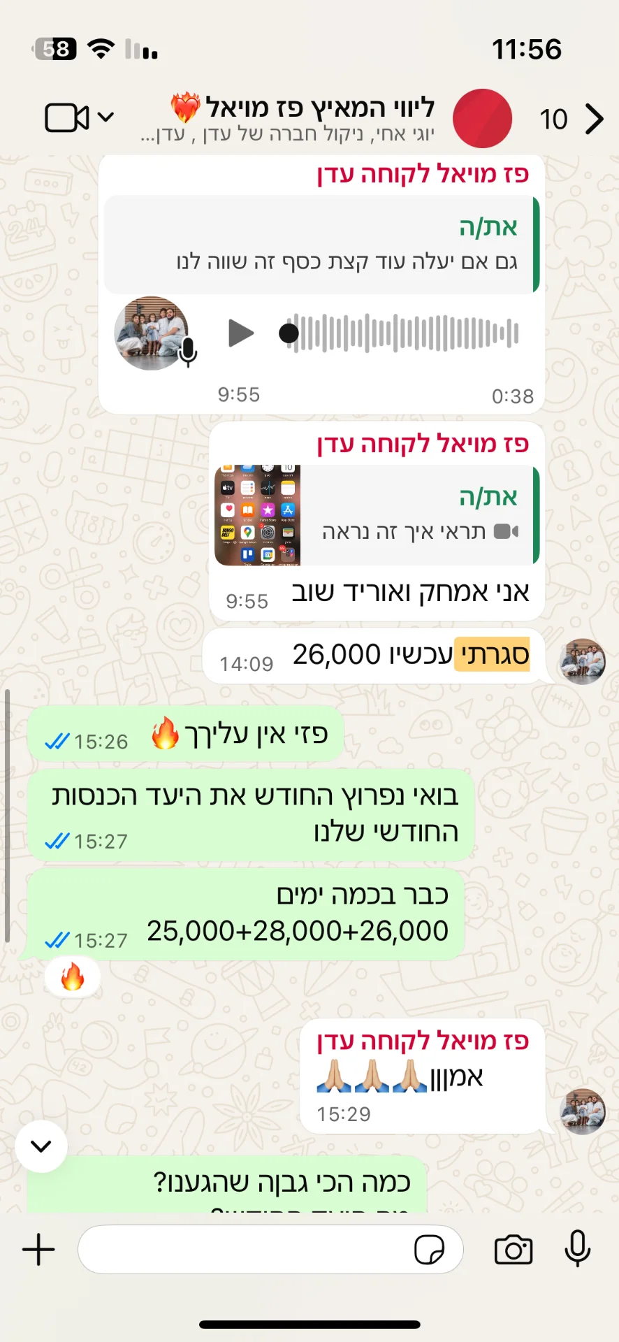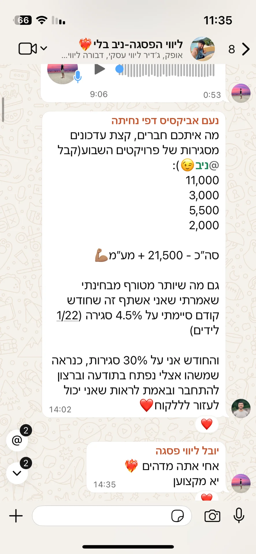 ובפחות משבועיים – אני ועדן סגרנו 9 ליווים עסקיים. 324,000 ש"ח.
