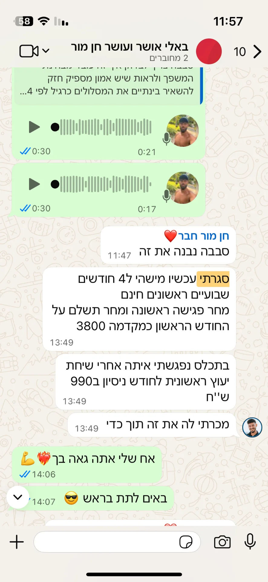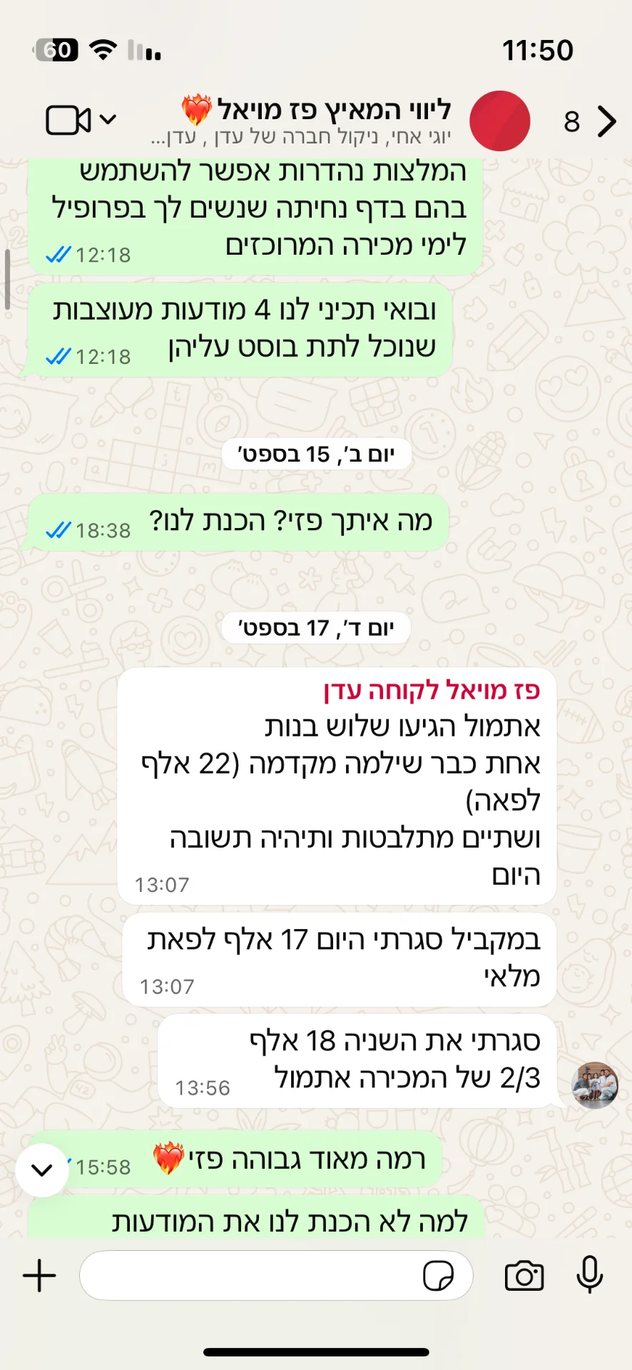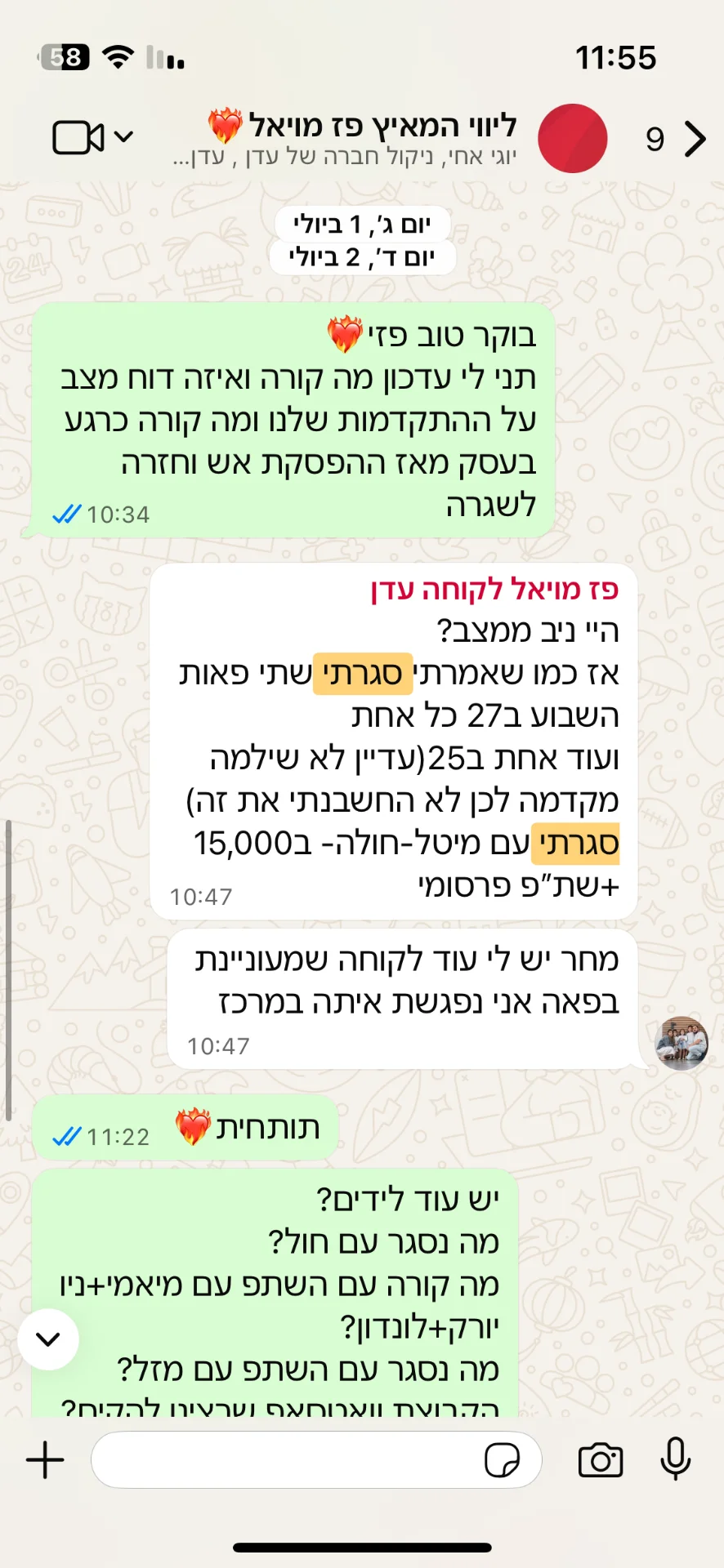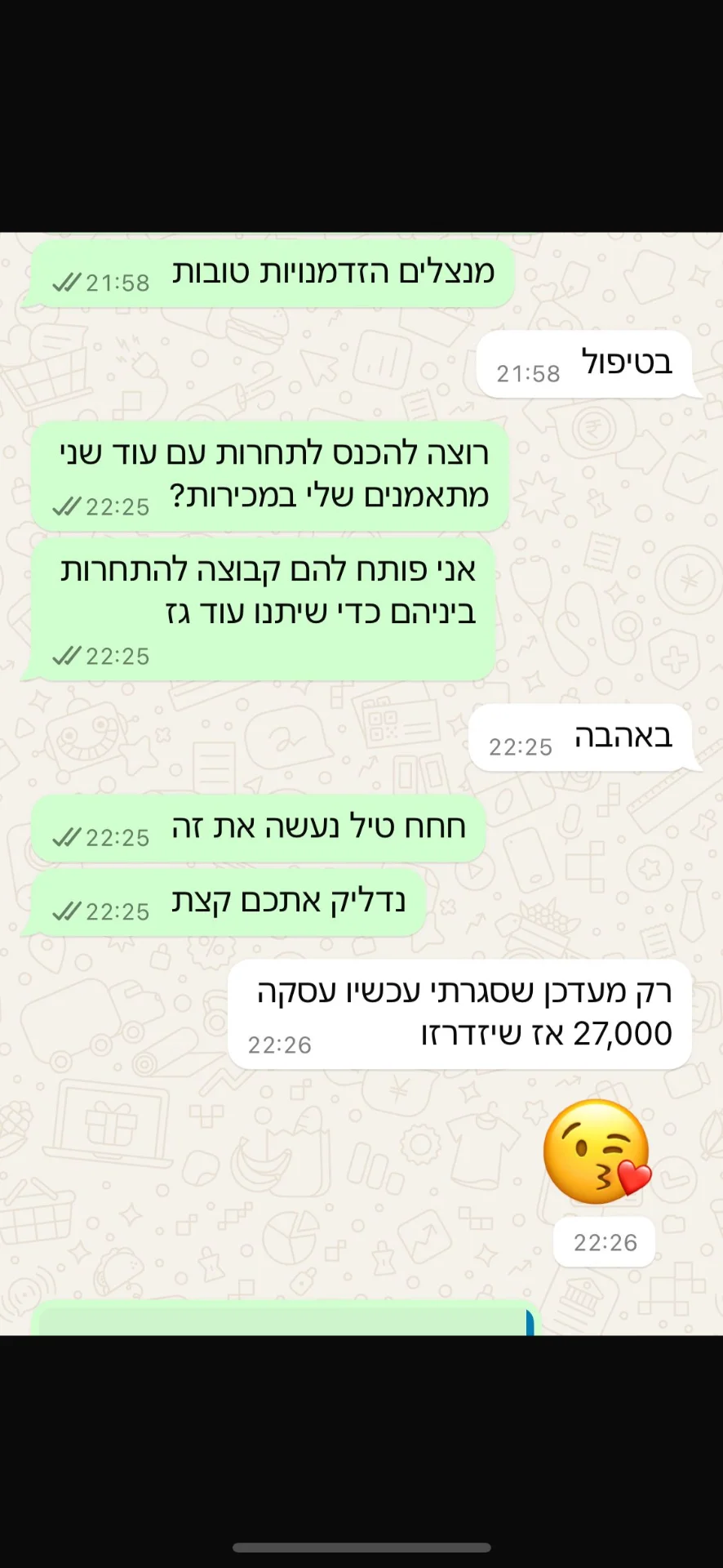 ובפחות משבועיים – אני ועדן סגרנו 9 ליווים עסקיים. 324,000 ש"ח.