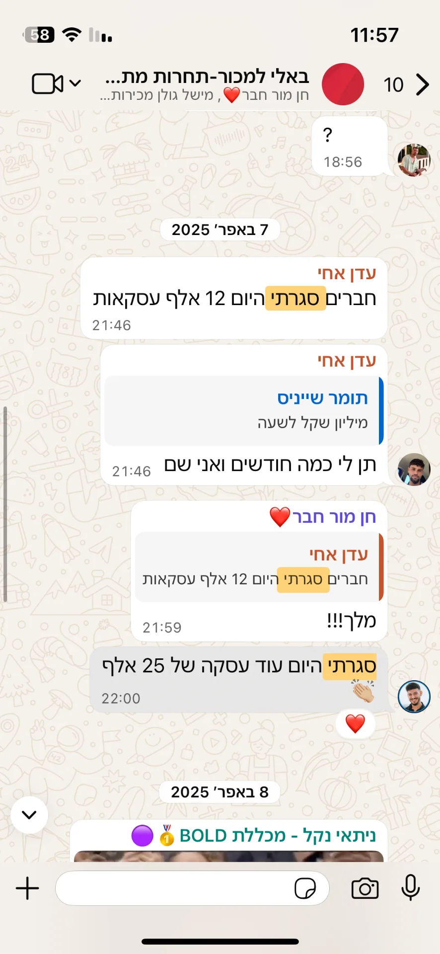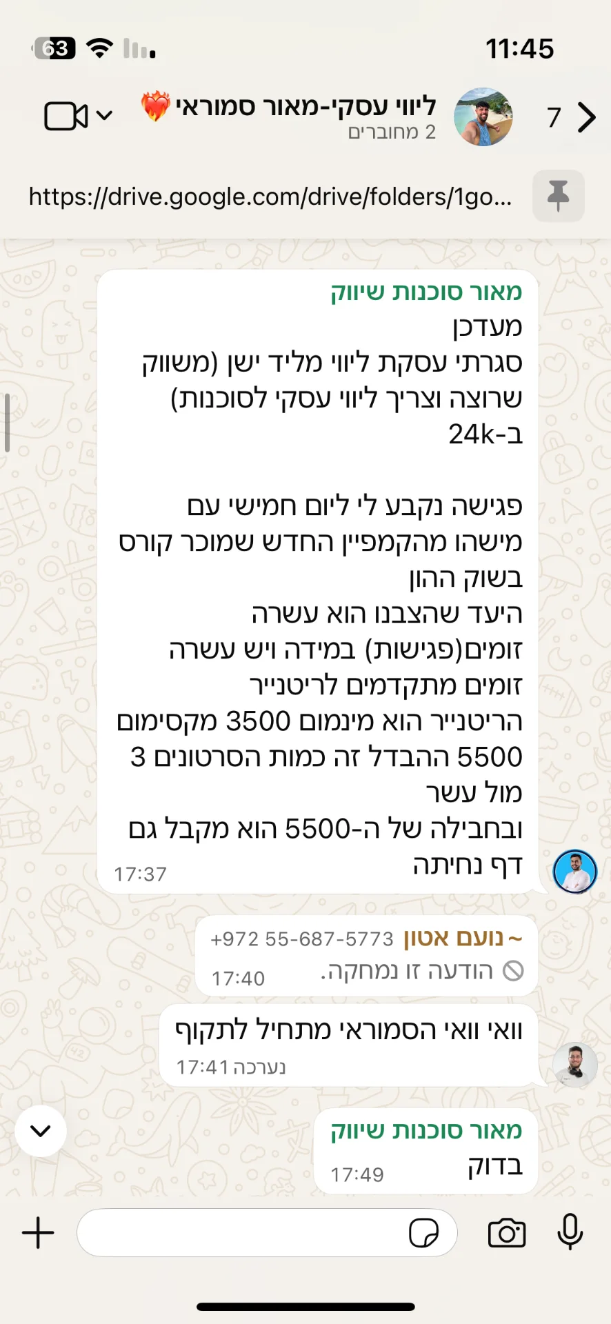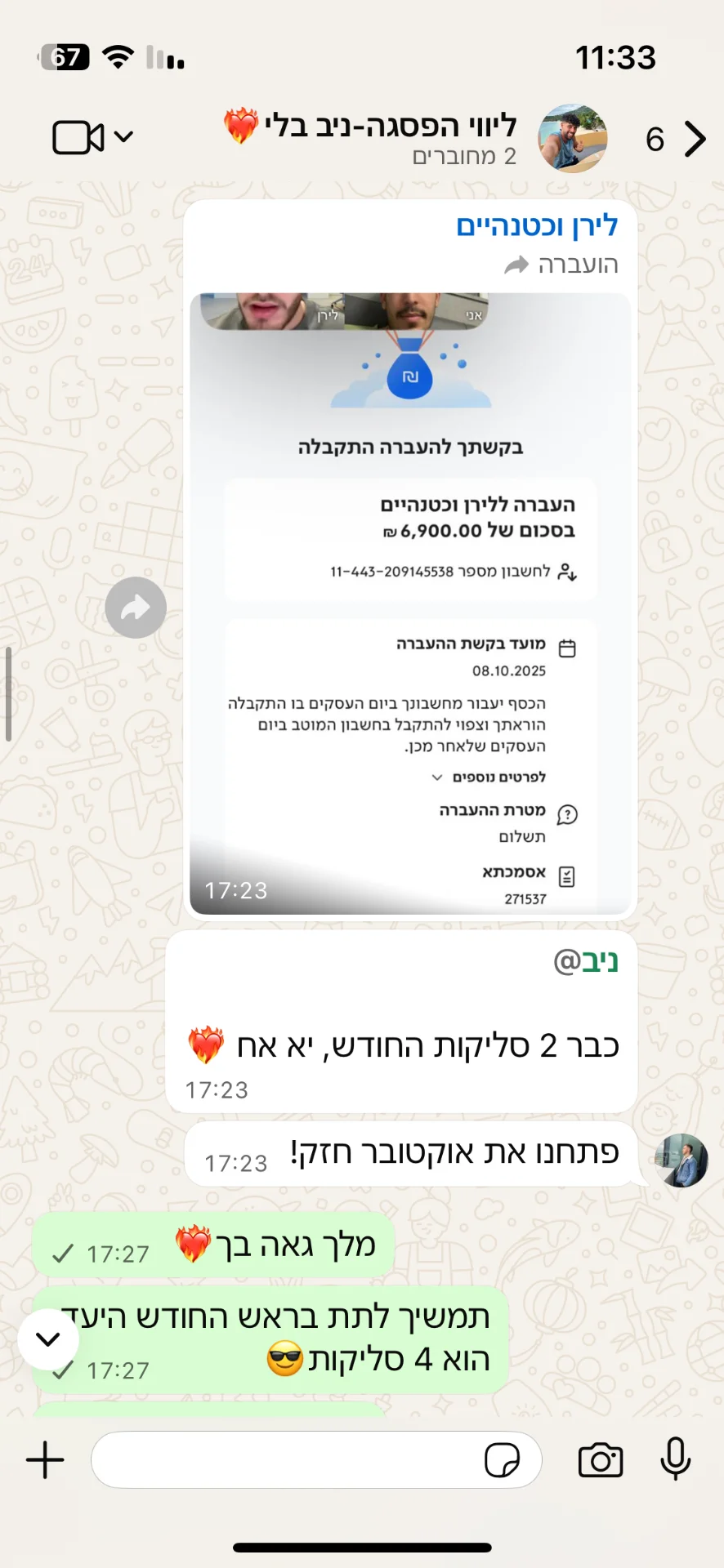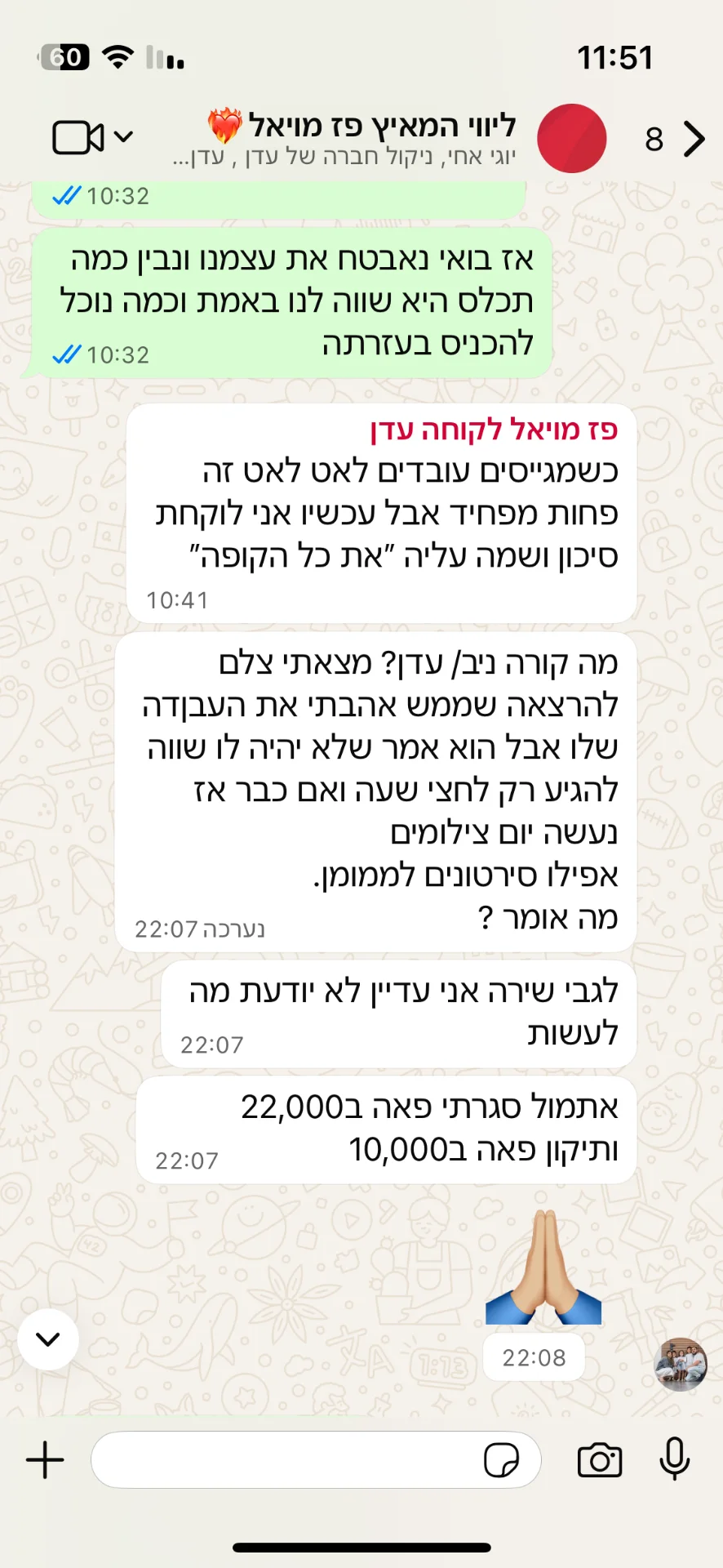 ובפחות משבועיים – אני ועדן סגרנו 9 ליווים עסקיים. 324,000 ש"ח.
