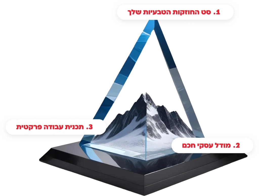 נניח אם אתה בן אדם שיש לו יכולות תקשורת ברמה גבוהה אז נבנה לך מודל עסקי שמחזק מעמד מכירה של אחד מול רבים בין אם זה על במה, וובינר או אתגר. או מצד שני אם אתה אדם עם חוזקה טכנולוגית אז נוכל לבנות תוכנה (שהיום זה הרבה יותר קל ומהיר עם AI) שתייצר לך את ההכנסה שאתה רוצה בסגנון חיים שאתה רוצה ובהתאם למי שאתה.